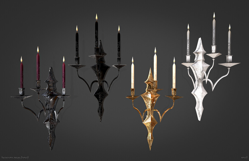 Low poly game ready 3D model of chandelier with unwrapped UVs and PBR textures